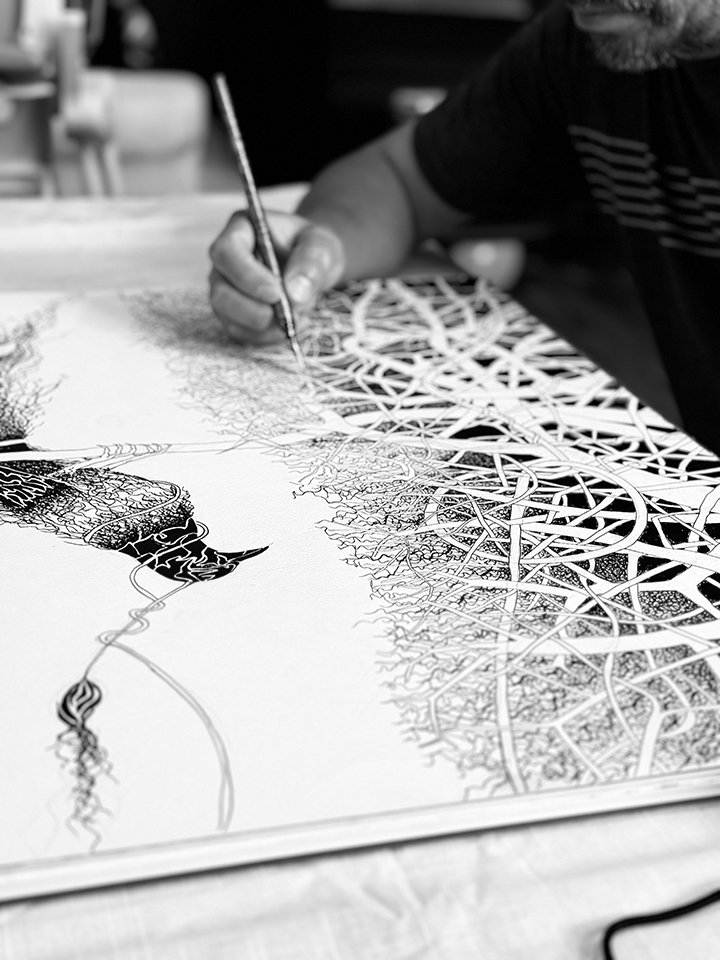 Work of art in private collection of Naturarte, 2007, Guatemala. Here I try to explain that many times we get caught up in giving quick solutions to certain problems, resulting in wrong decisions, so we need time to think and opt for the correct solution chosen from several options. It is at this time where I begin working with roots, referring to thoughts, ideas or decisions.