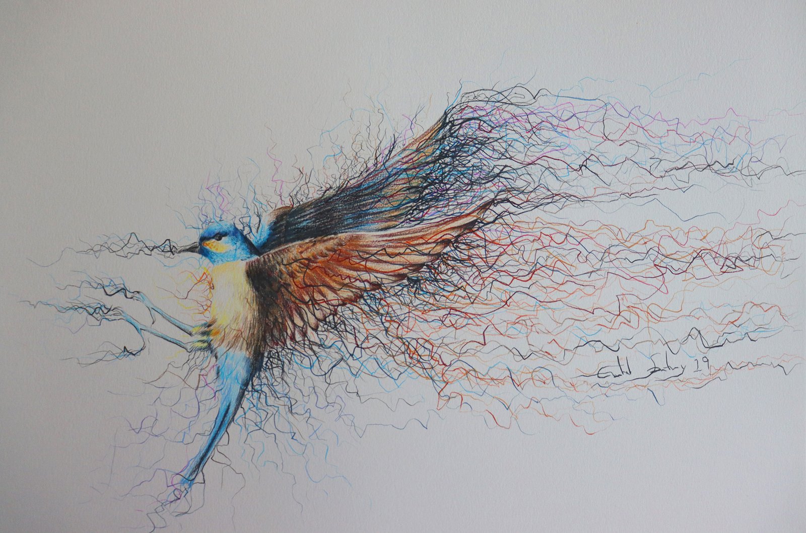 Crayons on watercolor paper.